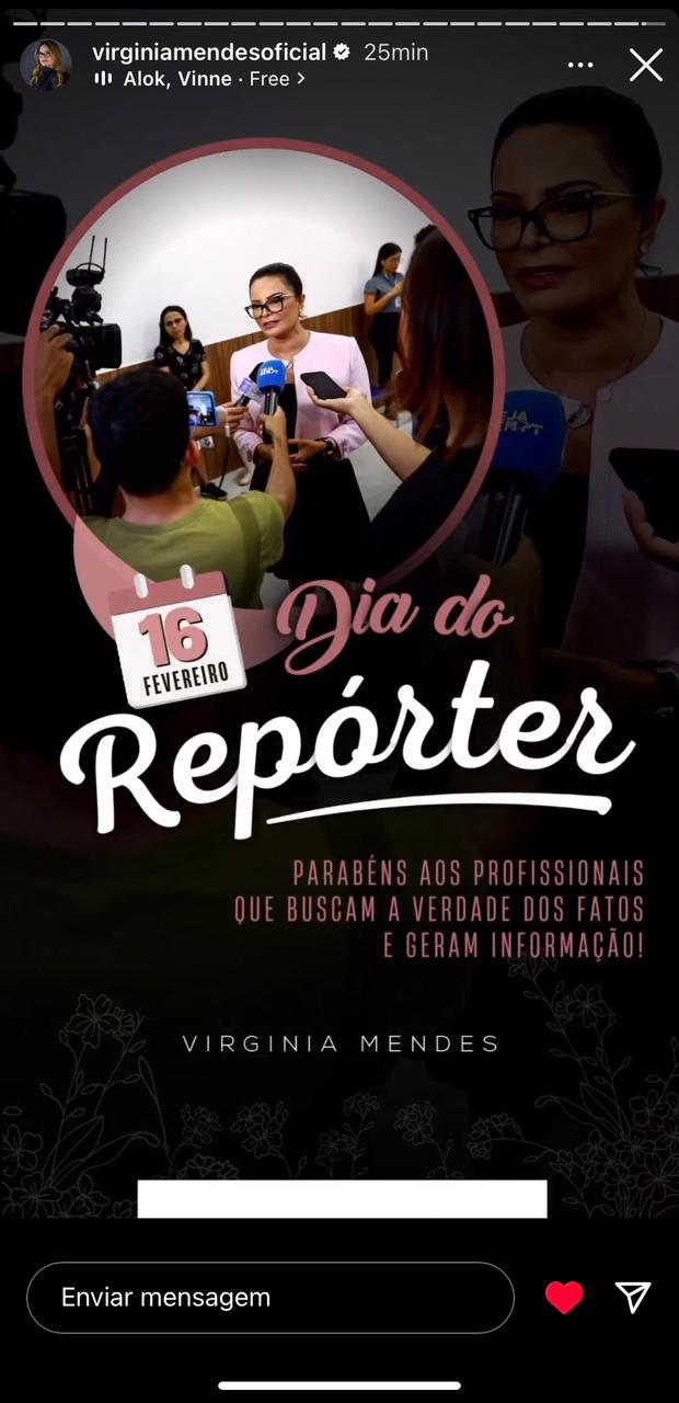 Virginia publicou um vídeo no storie do Instagram com a seguinte mensagem: "Parabéns aos profissionais que buscam a verdade dos fatos e geram informação!".